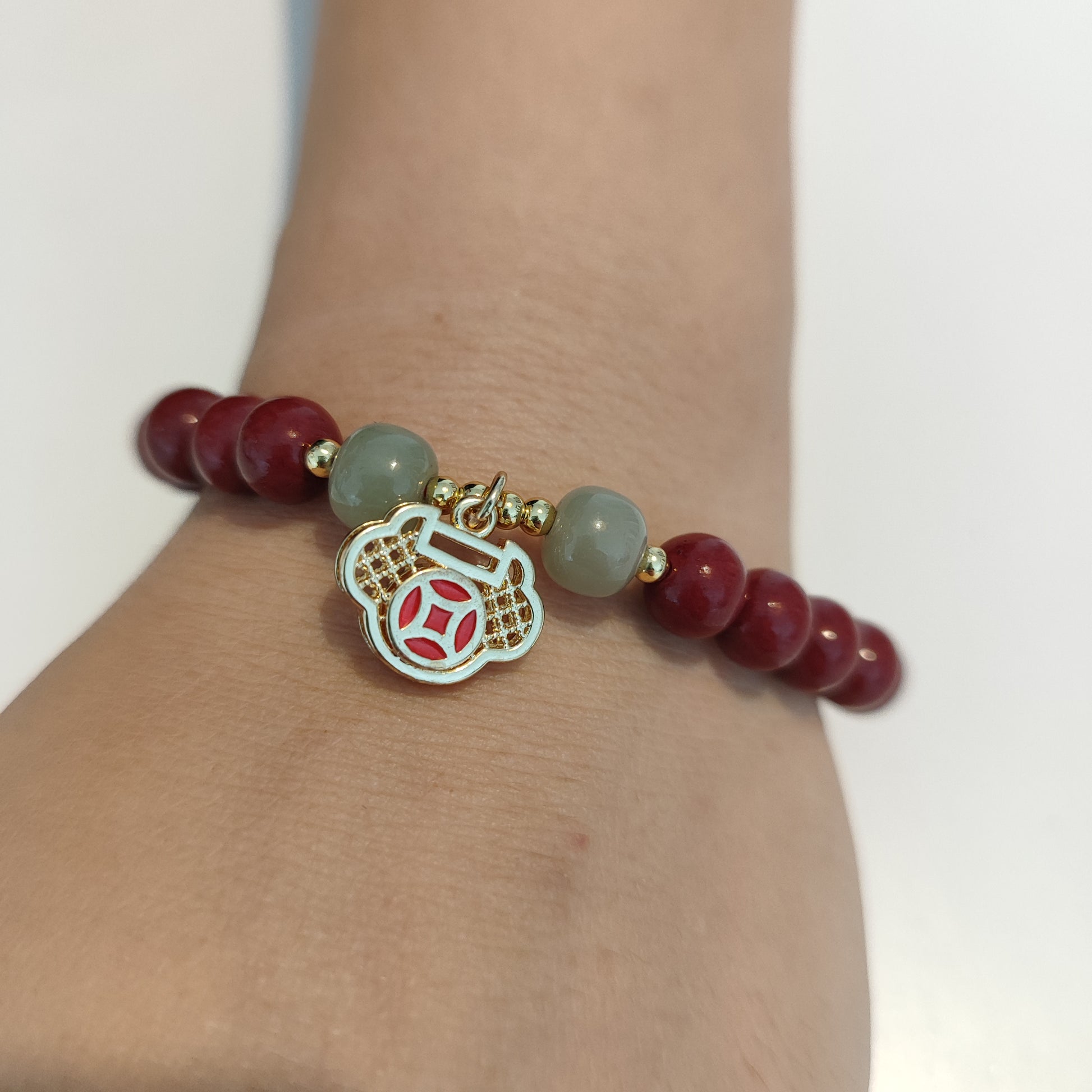 Bracelet en pierre rouge de Cinabre de Guizhou avec pendentif doré, perle de 8mm